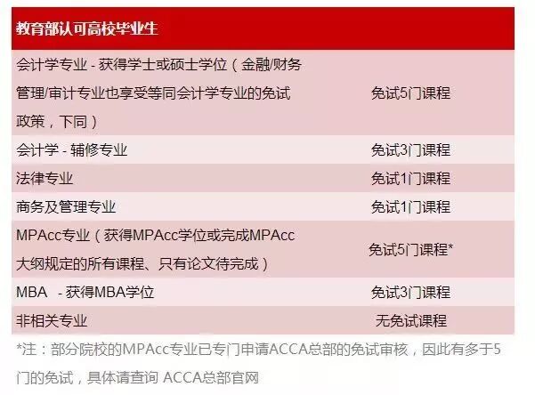 下图是教育部认可的高校毕业生和在校生分别可以免考的ACCA科目。
